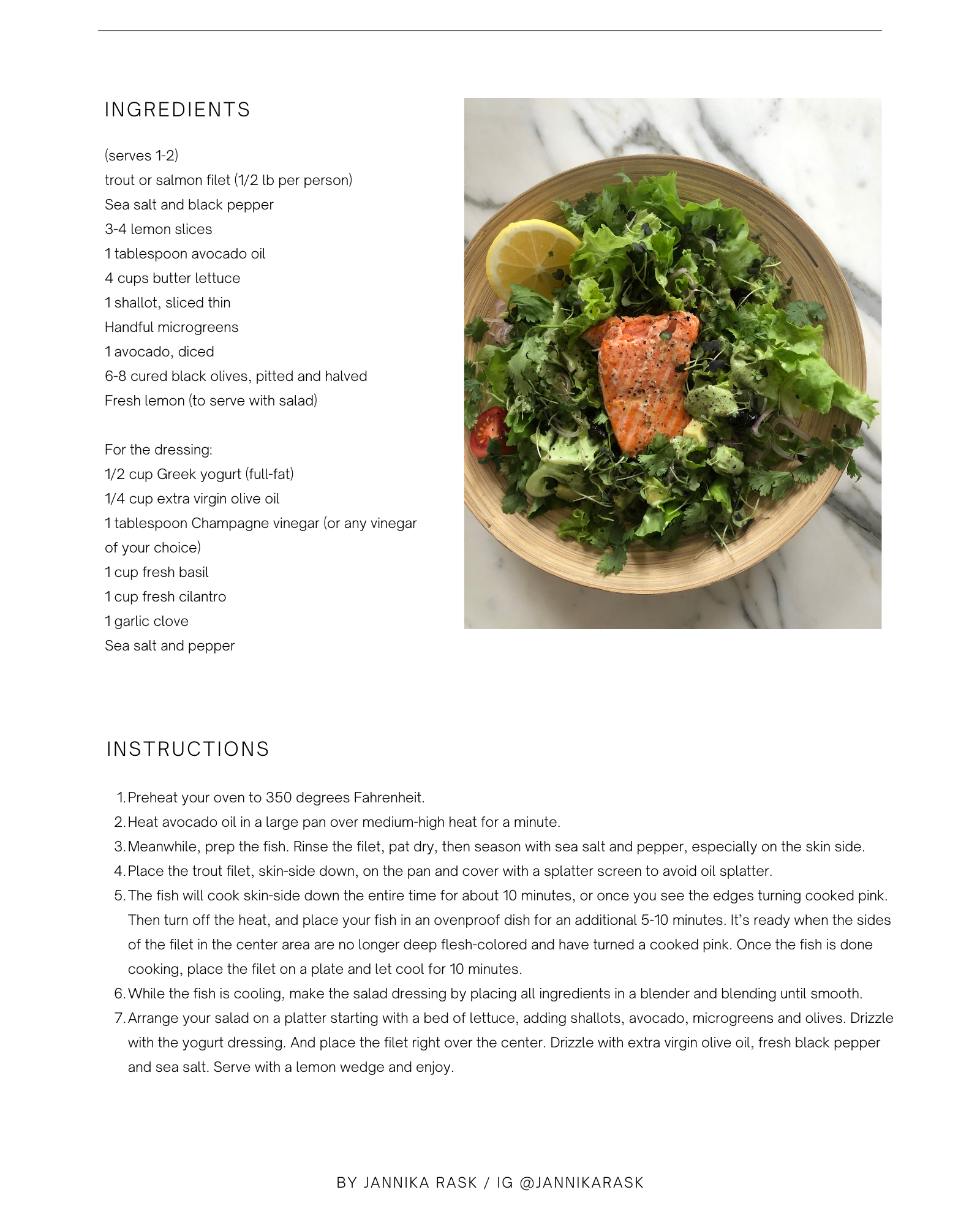 Trout on a Bed of Greens with Basil Cilantro Yogurt Dressing dinnerfishhealthylunchpescatariansalads Oct 16 Written By Jannika Rask Whatever it is, the way you tell your story online can make all the difference. troutsalmonsalmon saladhealthypescatariansalad dressingcreamy dressingyogurt dressingyogurt sauce Jannika Rask